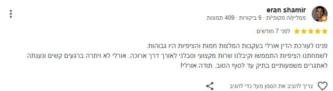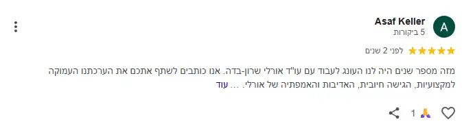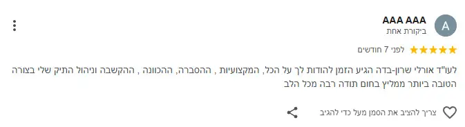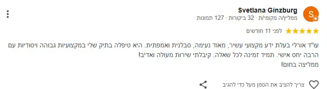 “אני מאמינה בשירות מקצועי, יחס אישי והשגת התוצאה הטובה ביותר ללקוח”.